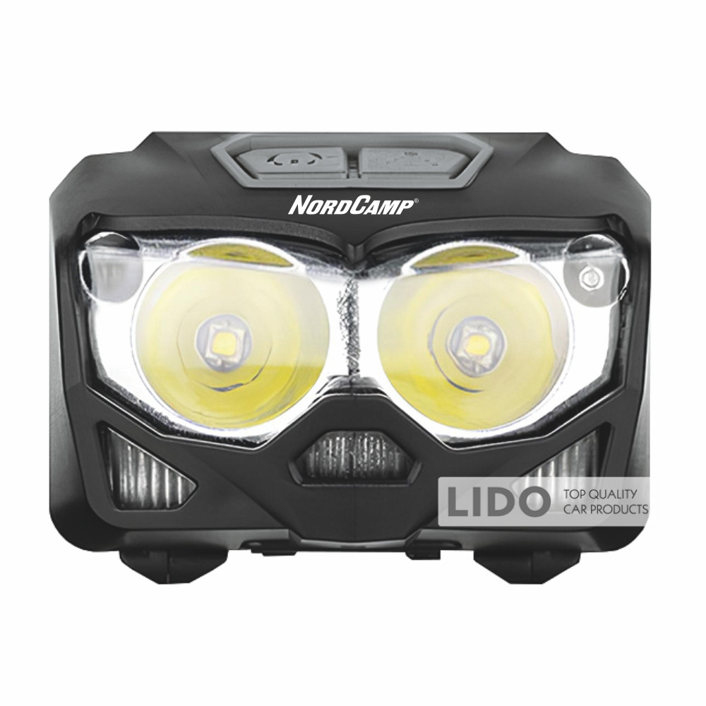 Ліхтар налобний Nord Camp 500Lm, 2x5W CREE XTG, 1200mAh/3xAAA, з сенсором, білий/червоний