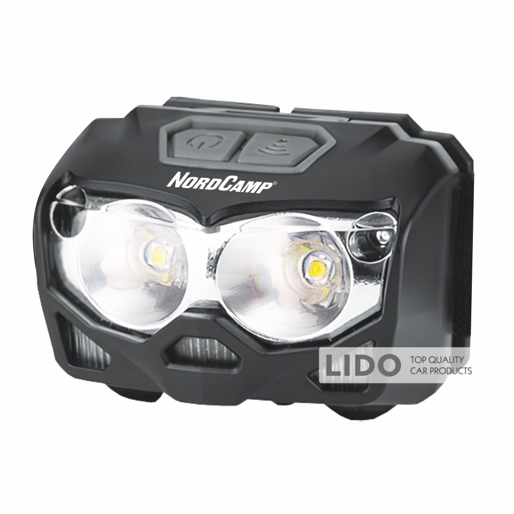 Ліхтар налобний Nord Camp 500Lm, 2x5W CREE XTG, 1200mAh/3xAAA, з сенсором білий/червоний