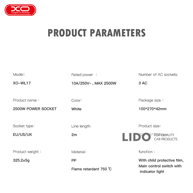 Мережевий подовжувач XO WL17 3AC