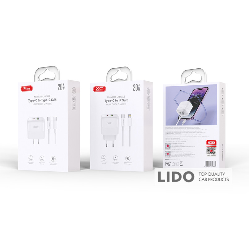Мережевий зарядний пристрій XO L137 PD20W/QC18W (1 USB-A + 1 USB-C) + Lightning кабель (білий)