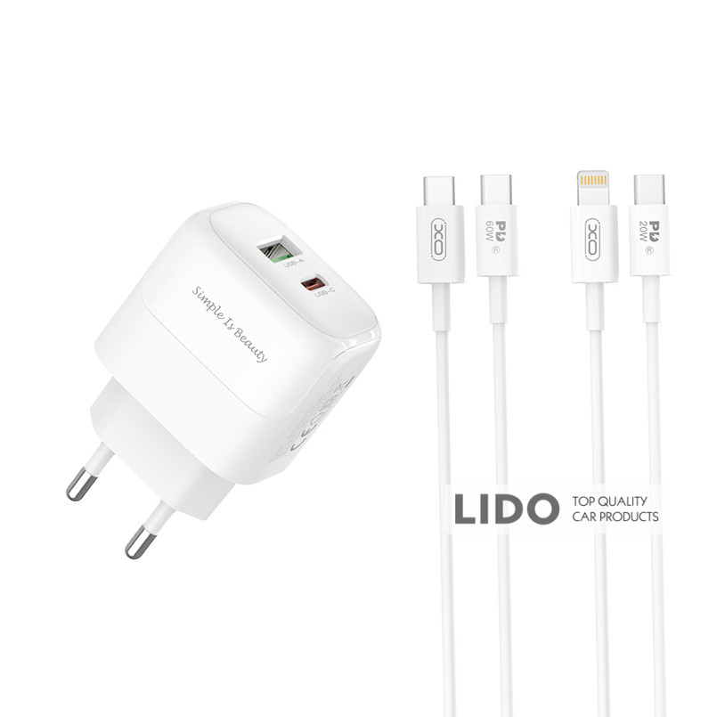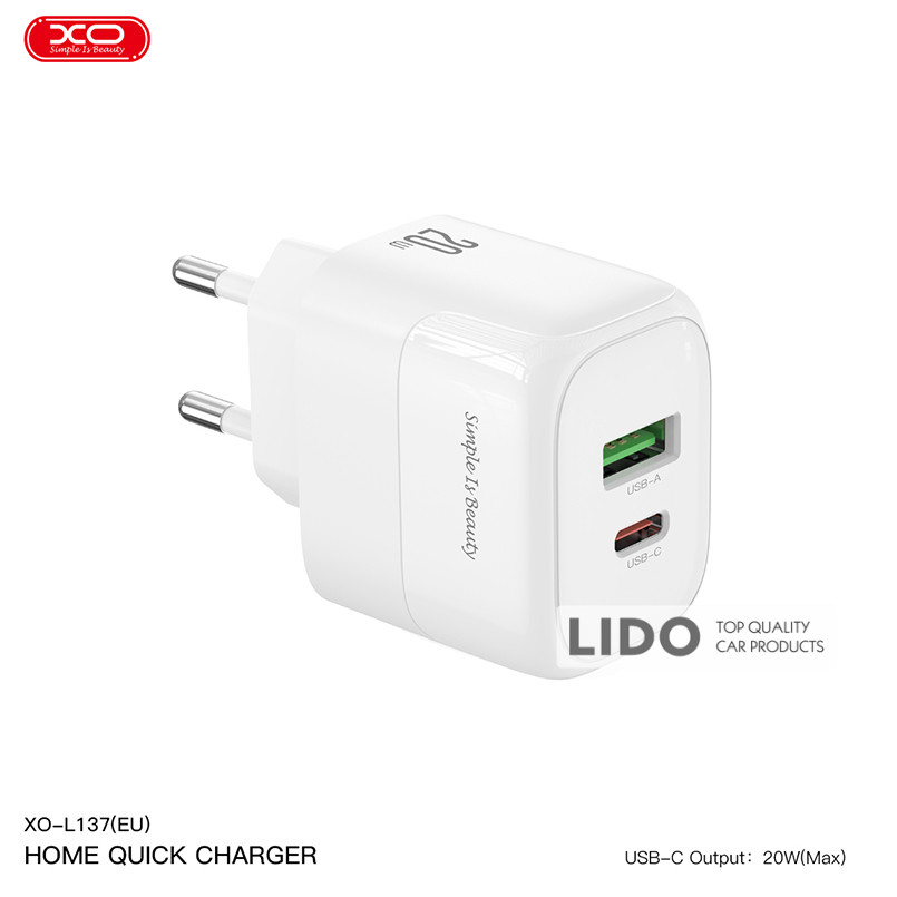 Мережевий зарядний пристрій XO L137 PD20W/QC18W (1 USB-A + 1 USB-C) + Type-c кабель (білий)