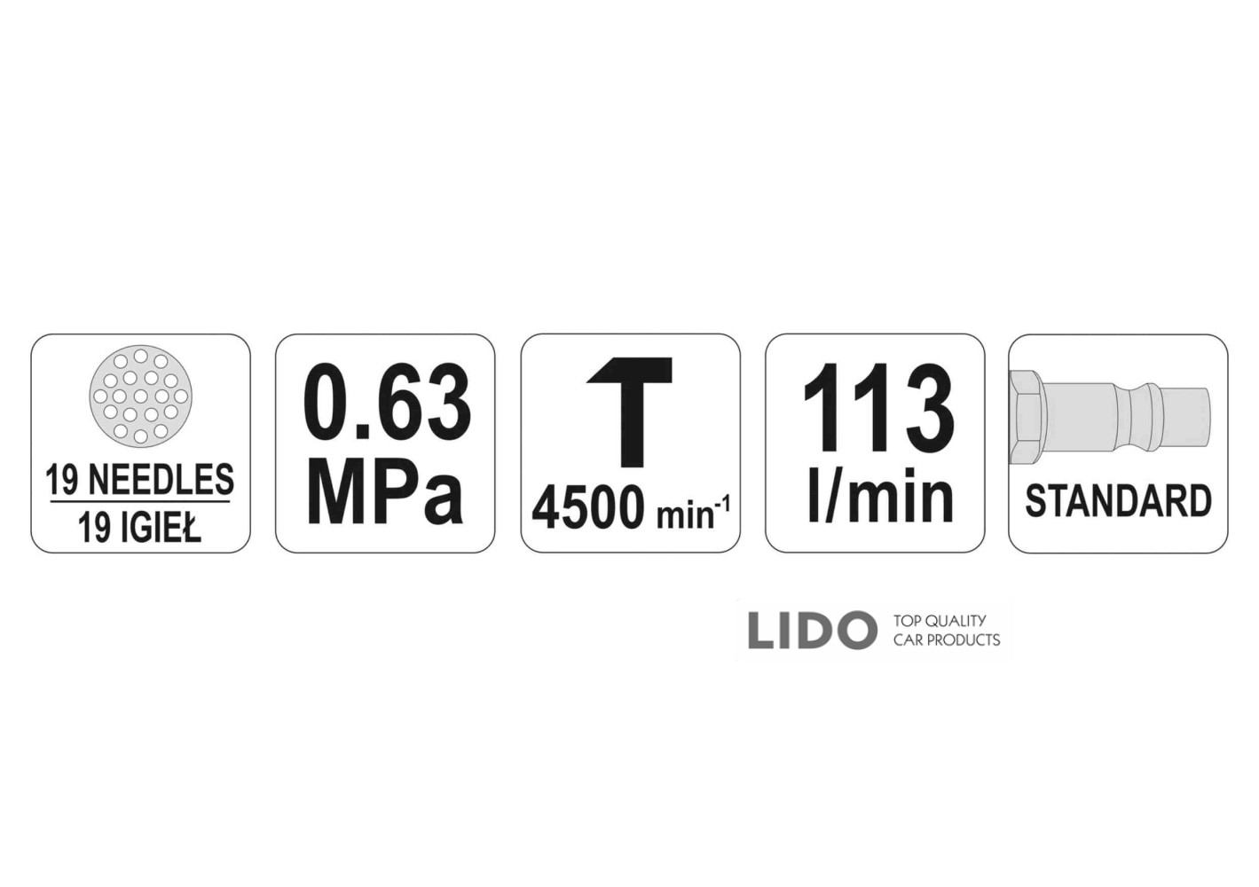 - Стандартне з'єднання для швидкого підключення до пневмосистеми