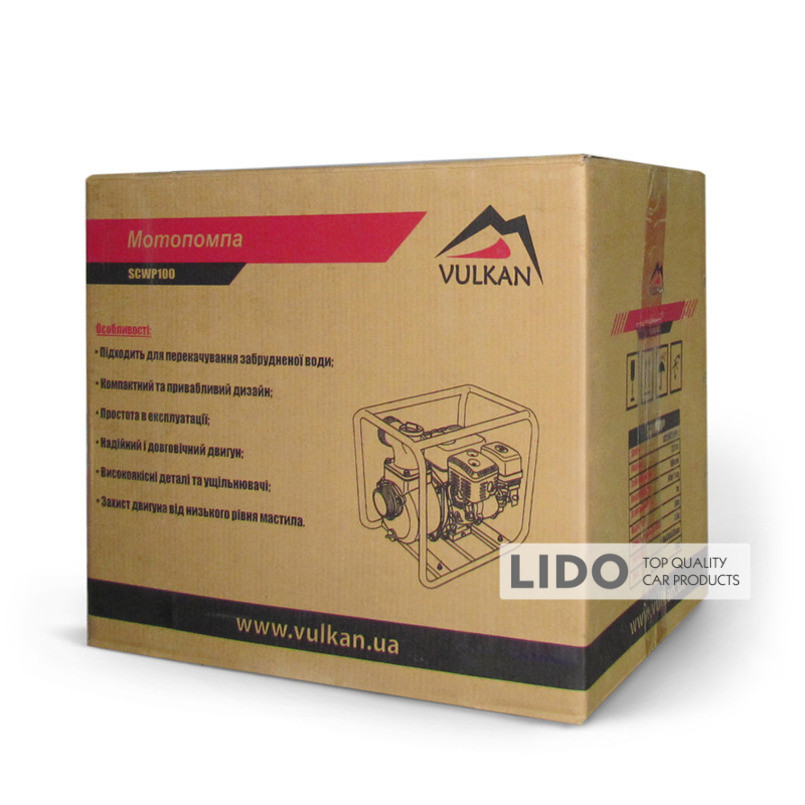 Мотопомпа Vulkan SCWP100 — продуктивна бензинова установка, призначена для перекачування чистої води у великих об'ємах. Оптимально підходить для зрошення значних територій, поливу в садово-городніх роботах, осушення колодязів і водойм, а також під час ремонтно-будівельних робіт.