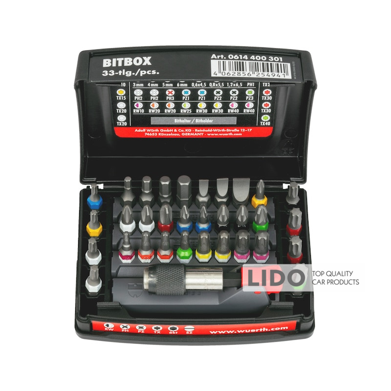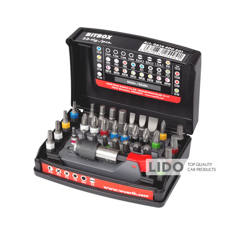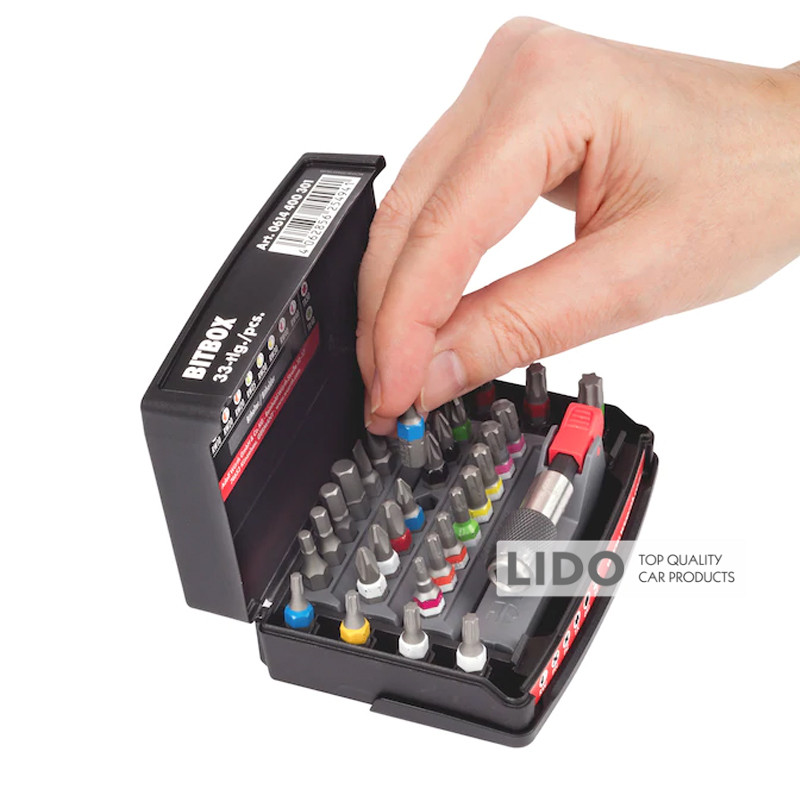 33 шт. Широкий асортимент біт в ударостійкій пластиковій коробці зі знімним затискачем для ременя