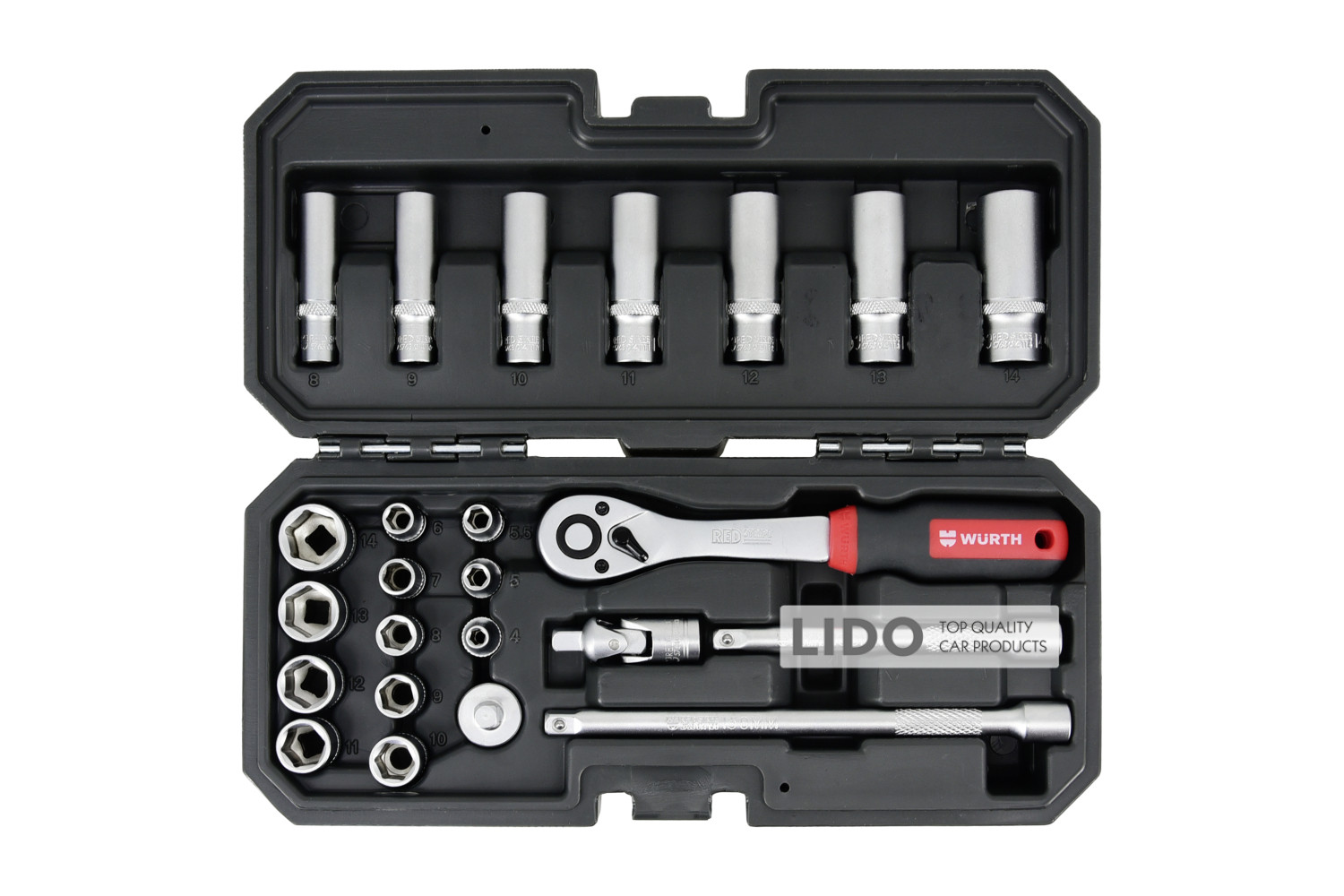 Набір головок торцевих Wurth з тріскачкою1/4" Red Stripe 24шт