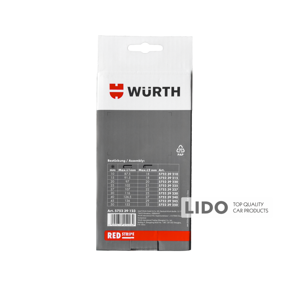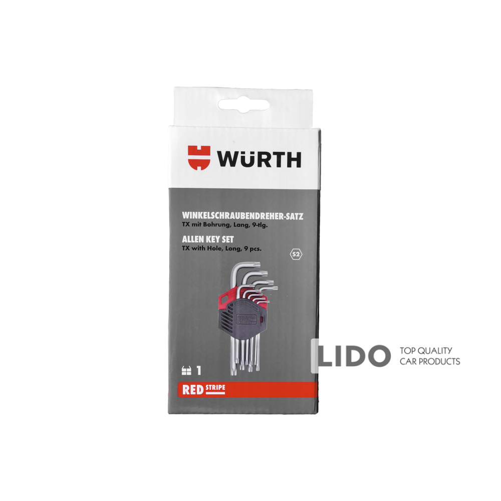 Набір ключів Wurth Г-подібних TORX з отвором TX10-50 Red Stripe 9шт