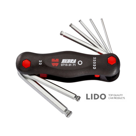 Набір ключів Wurth Zebra Г-подібних HEX з кулькою у посиленому корпусі 7шт