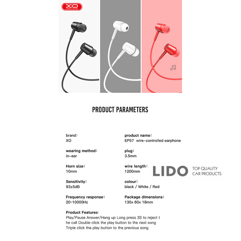 Навушники XO EP57 — дротові вакуумні навушники для прослуховування музики, перегляду відео та телефонних розмов. Вони сумісні з більшістю сучасних ґаджетів: смартфонами, планшетами, плеєрами та ПК.