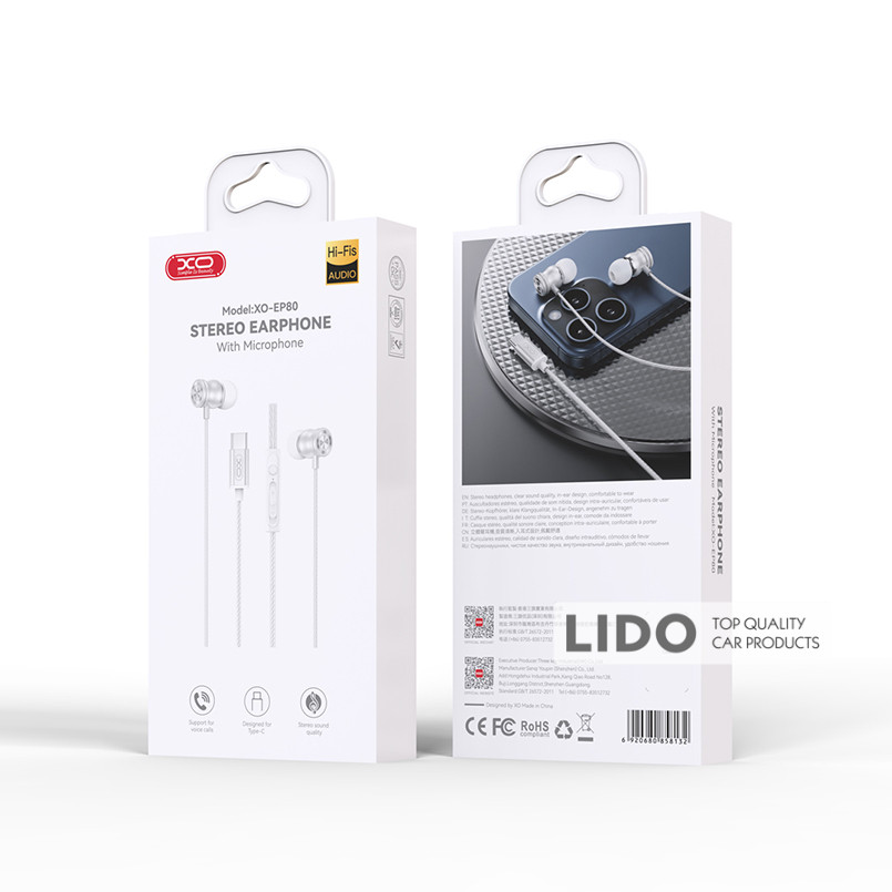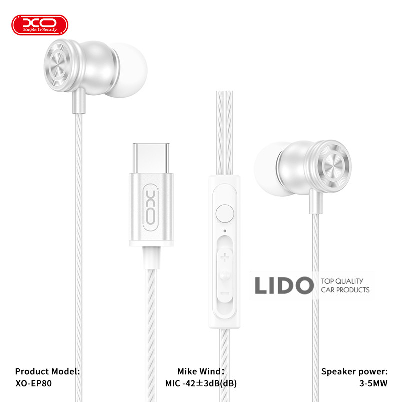 Навушники дротові XO EP80 In ear Type-C білі