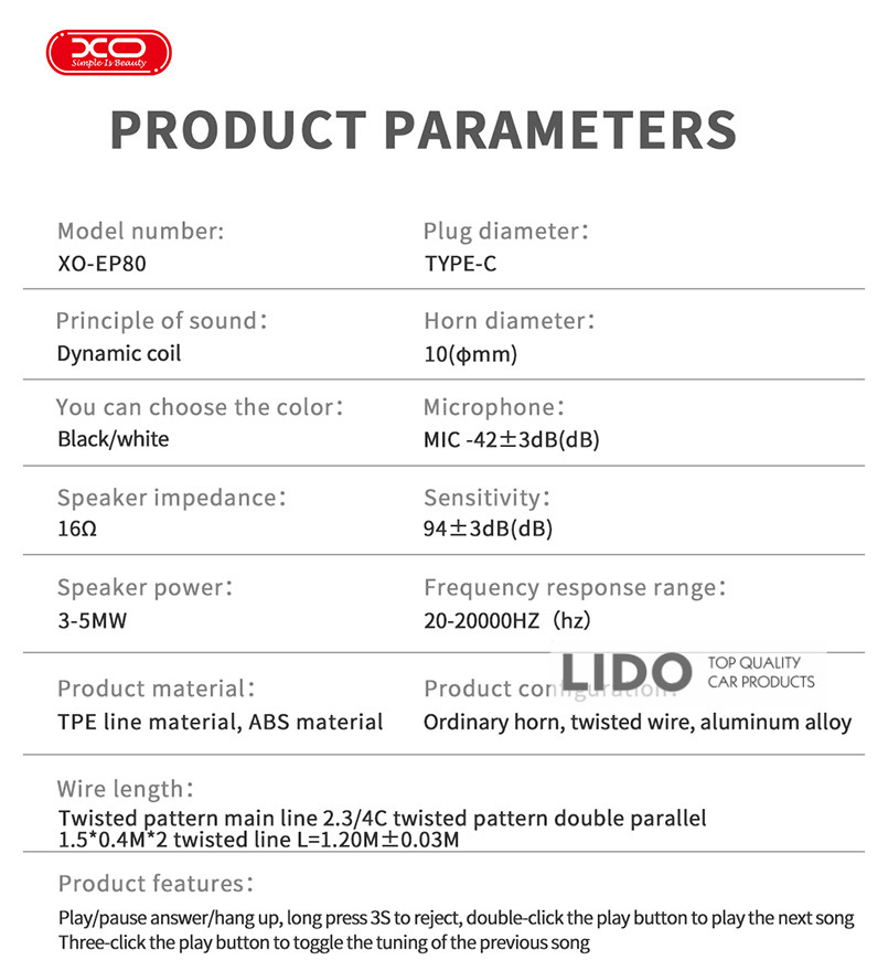 Навушники XO призначені для прослуховування музики та здійснення телефонних розмов. Вони відзначаються реалістичним відтворенням низьких частот, що забезпечує насичене та приємне звучання у щоденному використанні.