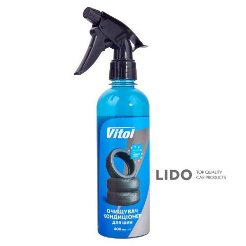 Очищувач-кондиціонер для шин VITOL – це ефективний засіб для догляду за автомобільними шинами, який одночасно очищує, надає блиску та захищає гумові поверхні від пересихання і старіння. Продукт відновлює глибокий чорний колір шин, надає їм свіжий вигляд та створює захисний шар від пилу, бруду та шкідливих впливів навколишнього середовища.