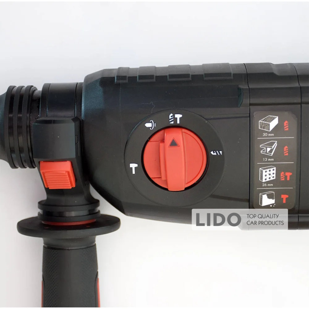 Потужний триопераційний перфоратор із силою удару 2,5 Дж, підходить для свердління та будь-яких виправних робіт у бетоні, камені та інших будівельних матеріалах.