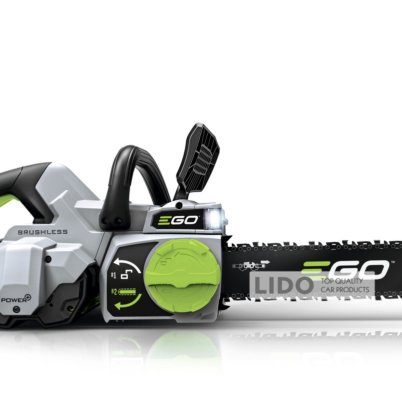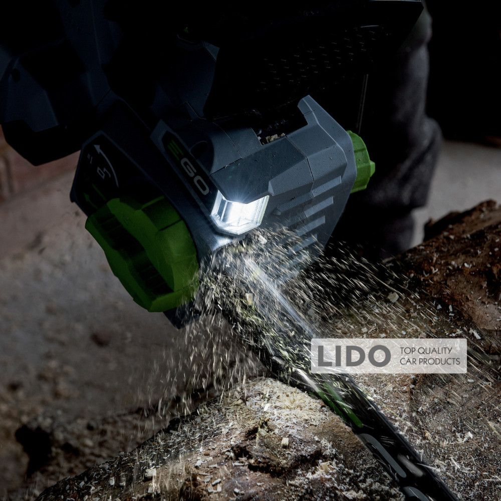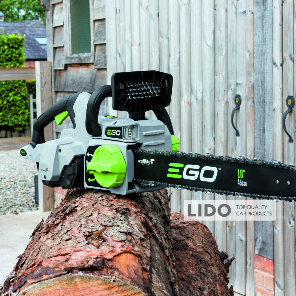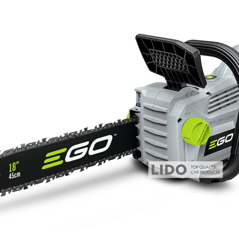 EGO CS1800E — продуктивна та потужна електропилка професійного класу для промислового використання. Обладнана безщітковим двигуном, живиться від Li-Ion акумуляторів 56 В. Пила комплектується шиною 45 см / 18" і ланцюгом 3/8" зі швидкістю 20 м/с. На корпусі передбачено LED-підсвічування для робіт у темний час доби. Для безпеки користувача є захисний щиток з механічним гальмом і шипи.