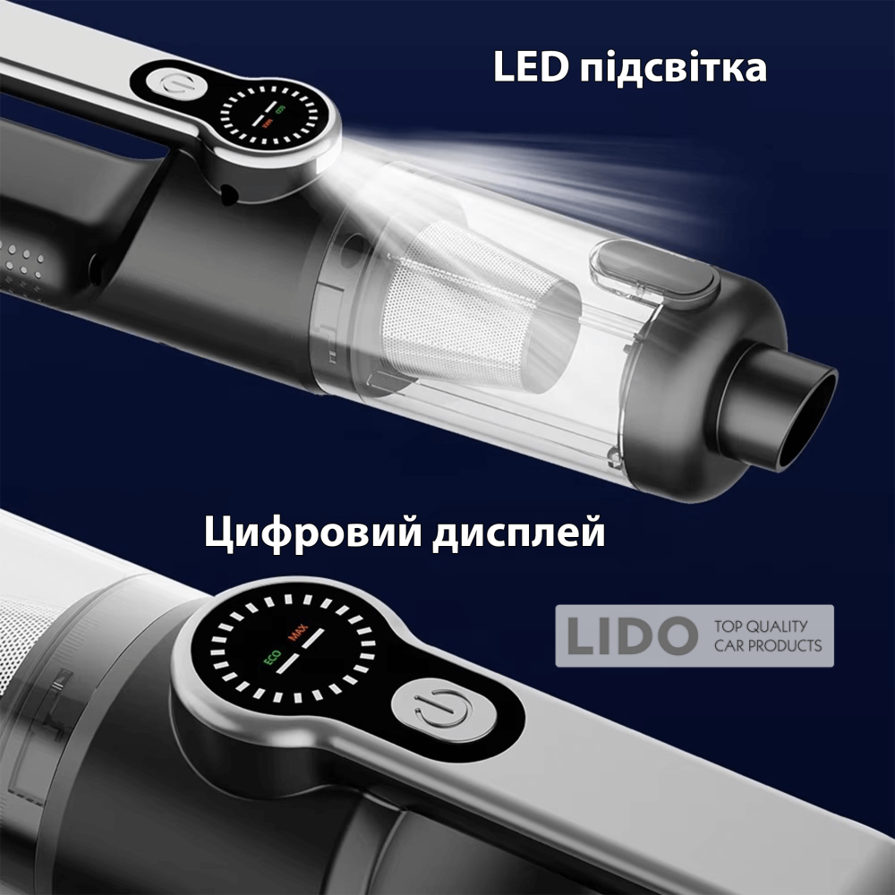 Вбудоване LED-освітлення допомагає виявити бруд у темних куточках салону автомобіля, під сидіннями чи в багажнику. Особливо корисно під час нічних поїздок або на кемпінгу.