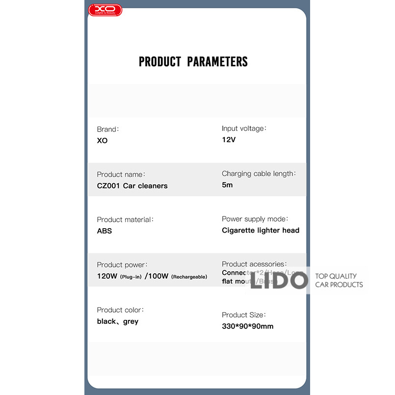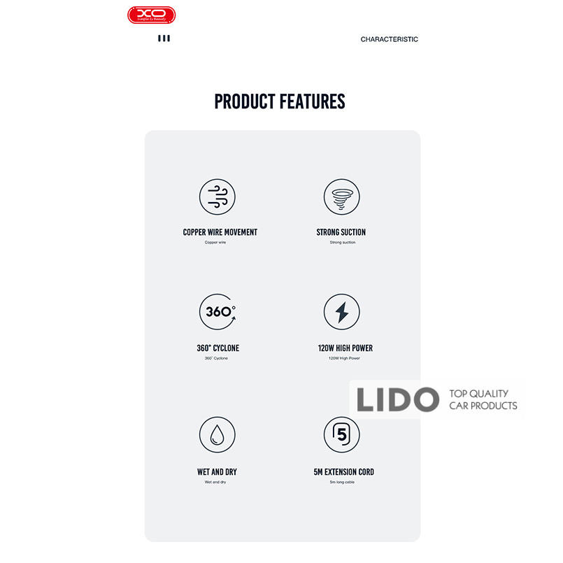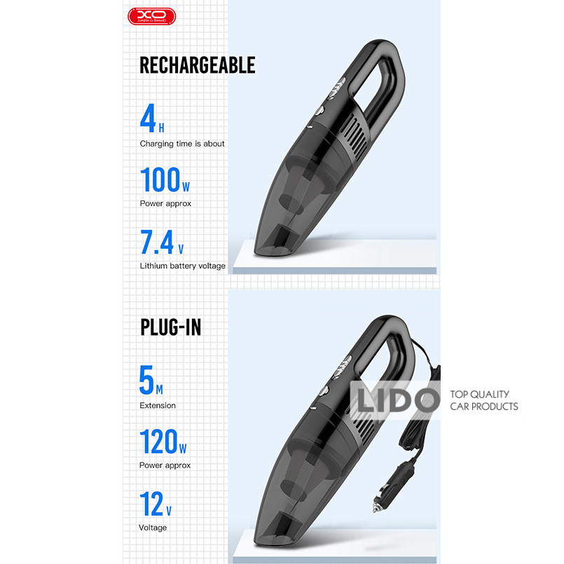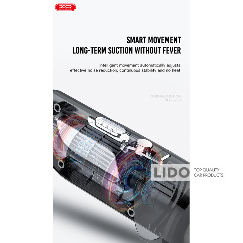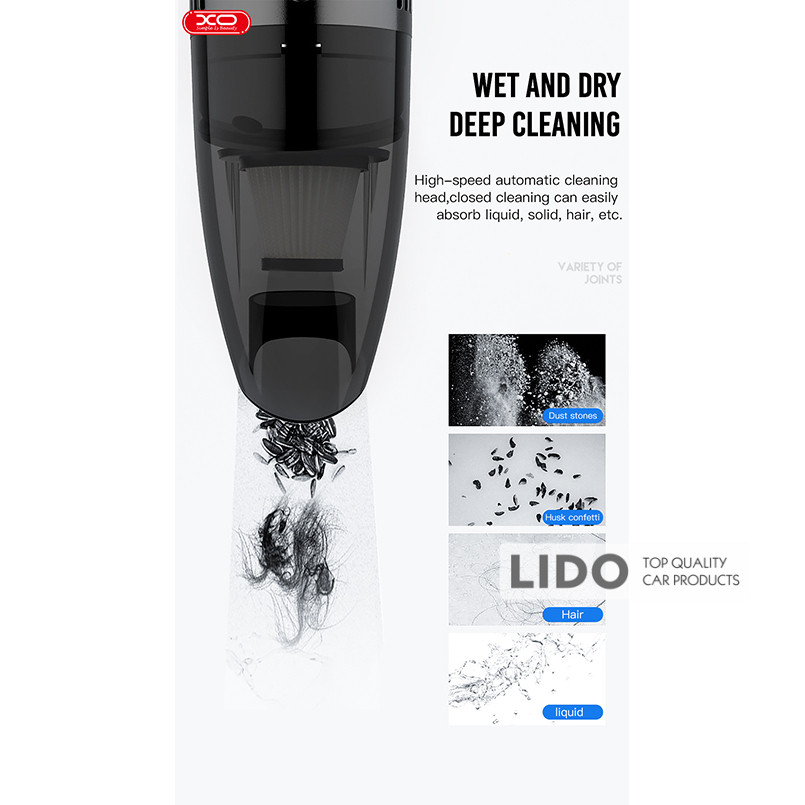 XO CZ019 — бездротовий пилосос, незамінний помічник у підтримці чистоти як в автомобілі, так і вдома. Компактні розміри дозволяють зручно брати його в дорогу, а потужність всмоктування до 6,1 кПа забезпечує високоякісне прибирання.