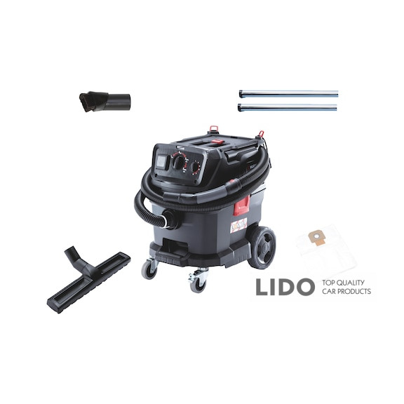 Універсальний пилосос для будівельних майданчиків із сертифікатом L та автоматичним очищенням фільтра. Забезпечує високу ефективність прибирання, зручність у використанні та надійний захист від електростатичних зарядів.