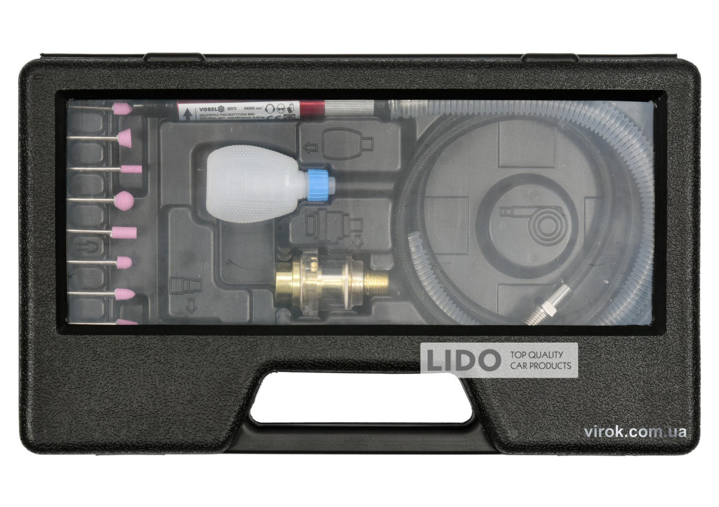 Пневматична шліфувальна машина Vorel пряма 3мм 54000об/хв 113л/хв + набір аксесуарів