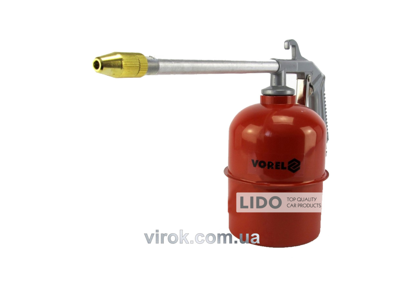 Пістолет VOREL призначений для очищення струменем стисненого повітря з чистячим засобом. Для очищення можна використовувати тільки біорозкладні речовини. Забороняється використовувати легкозаймисті речовини. Оснащений баком і довгим соплом, пістолет дозволяє проводити очищення навіть у важкодоступних місцях.