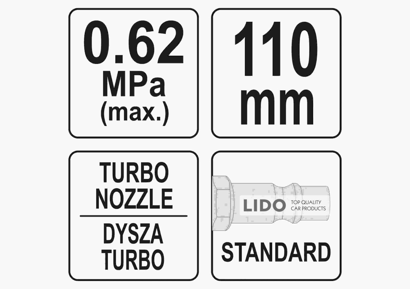 - Точне сопло для важкодоступних місць при очищенні двигуна автомобіля