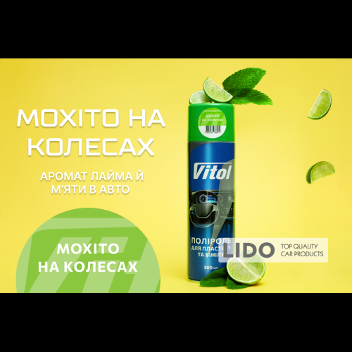 Поліроль для пластику та вінілу VITOL матова – це професійний засіб для догляду за пластиковими та вініловими поверхнями автомобіля, який надає їм природний матовий вигляд без зайвого блиску. Він ефективно видаляє пил, сліди пальців та дрібні забруднення, одночасно відновлюючи насичений колір та текстуру. Продукт створює захисний бар'єр від ультрафіолету та вологи, попереджаючи пересихання та вигоряння матеріалів. Після обробки поверхні залишаються не лише чистими, а й наповненими легким приємним ароматом, що додає свіжості та комфорту в салоні.