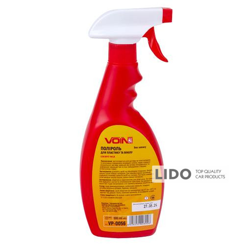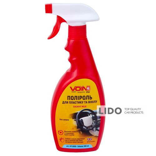 VOIN Нова машина – це універсальний поліроль, який ефективно очищує, оновлює та захищає пластикові, вінілові та гумові поверхні салону автомобіля. Засіб забезпечує делікатний догляд, повертаючи поверхням первісний вигляд, створюючи антистатичний ефект та захист від ультрафіолетового випромінювання