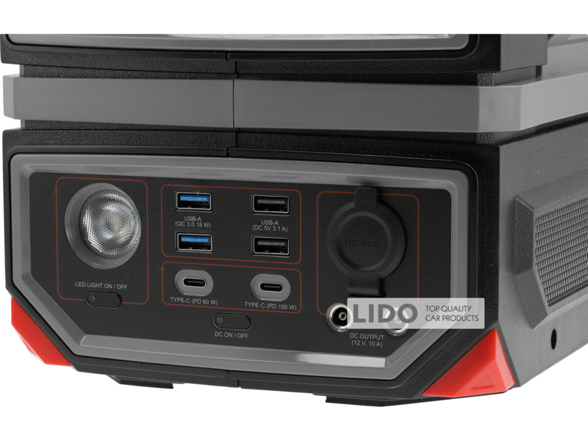 Портативна акумуляторна електростанція ємністю 504 Вт·год. Вона може одночасно живити одинадцять пристроїв.