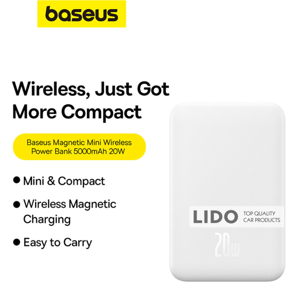 Компактний дизайн зовнішнього акумулятора Baseus Magnetic Mini Wireless Fast Charge Power Bank 5000mAh 20W ідеально підходить до задньої панелі смартфона з MagSafe, тому він не заважатиме острівцю камери і заряджатиме iPhone, iPhone 12 Pro, iPhone 12 Pro Max, iPhone 12 Mini, iPhone 1 14, iPhone 14 Plus, iPhone 14 Pro, iPhone 14 Pro Max, iPhone 15, iPhone 15 Plus, iPhone 15 Pro, iPhone 15 Pro Max та AirPods Pro ще швидше. Пристрій добре працює у поєднанні з магнітними корпусами.