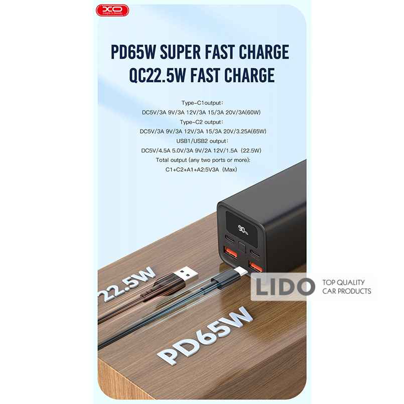 Повербанк (Power Bank) XO PB97 20000mAh 65W чорний