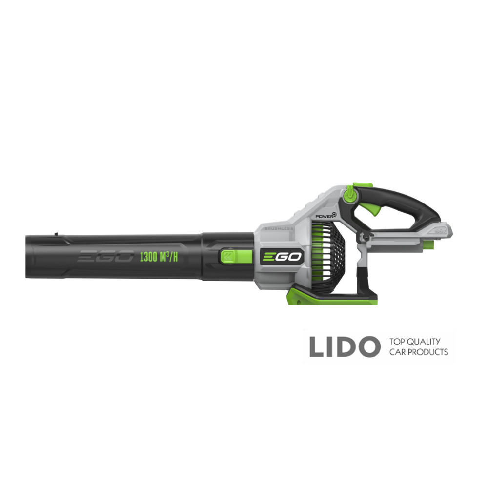 EGO LB7650E — найпотужніша модель садового повітродува з усієї лінійки EGO, не має аналогів у світі. Високу потужність та продуктивність забезпечує безщітковий двигун, який живиться від Li-ion акумуляторів EGO 56V. Завдяки особливій формі турбіни, повітродув здатний видати до 1300 куб.м/год повітря на швидкості 322 км/год. Швидкість потоку можна плавно регулювати, для максимальної продуктивності на корпусі є окрема кнопка BOOST. Час роботи повітродуву залежить від підключеного акумулятора та вибраного режиму роботи.