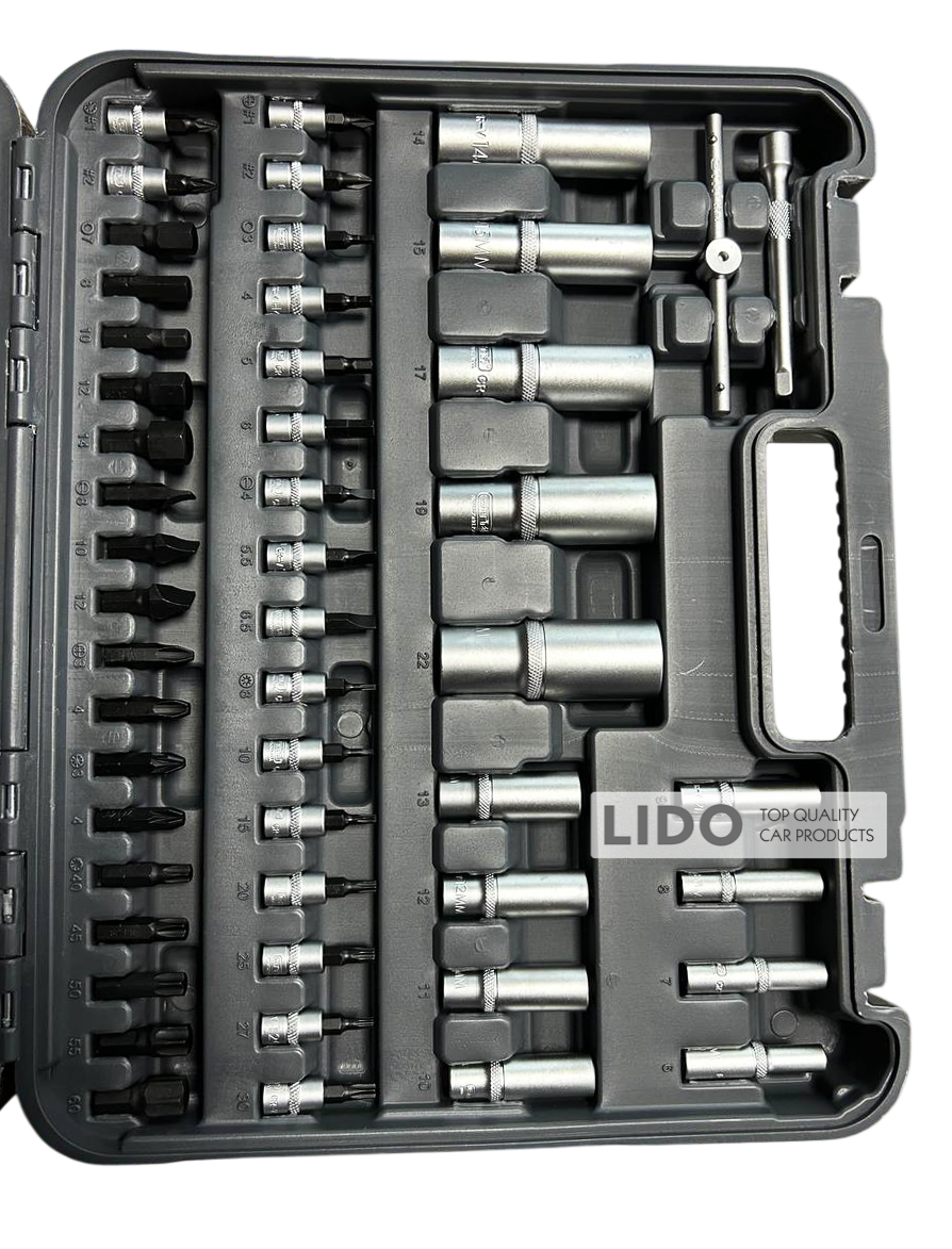 - Розмір головок 1/2 " — Torx E: E10-E24, 6-гр подовж: 14-19, 6-гр: 10-32