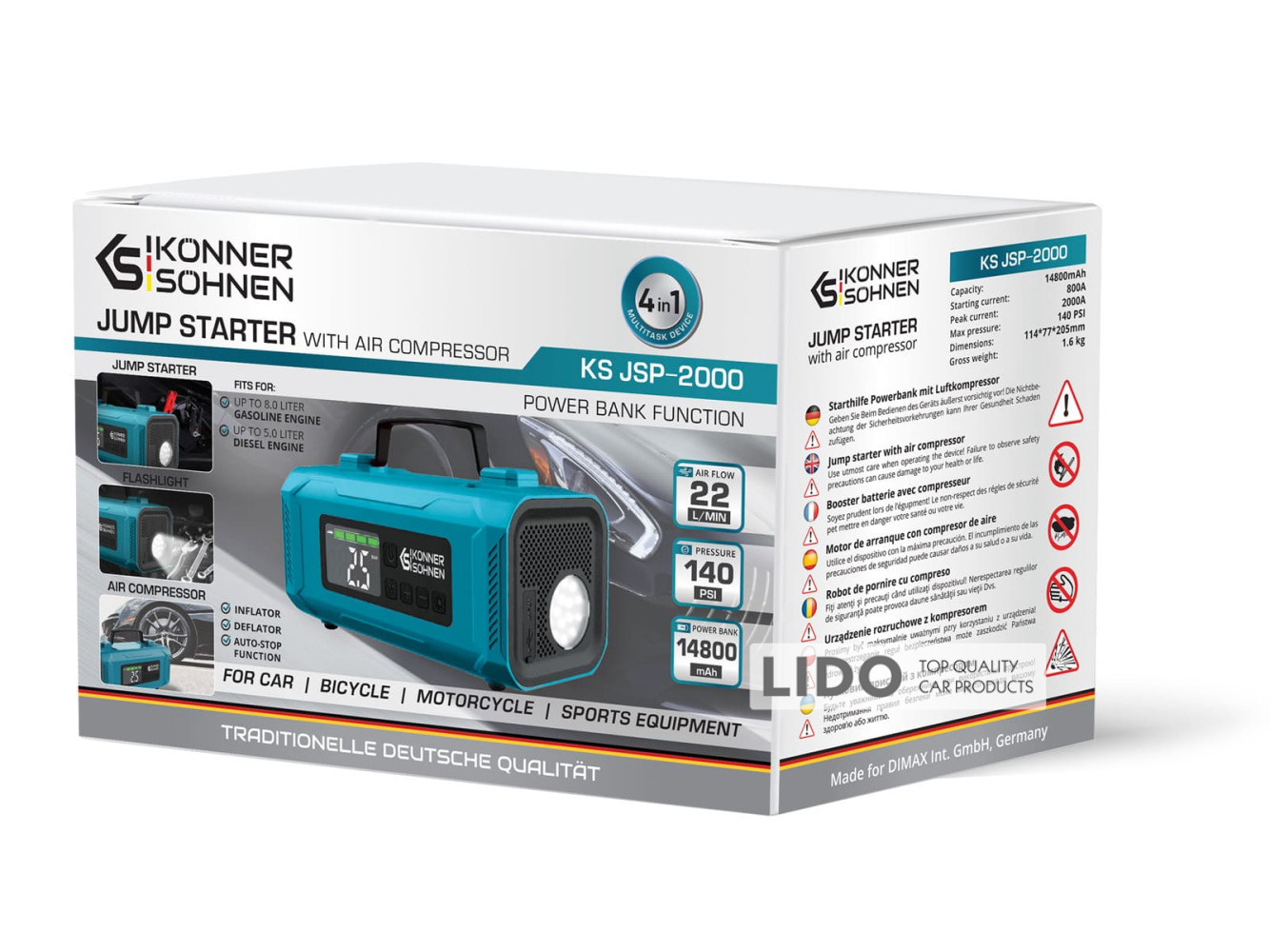 Пусковий пристрій з компресором Konner & Sohnen KS JSP-2000 2000А 14800mAh