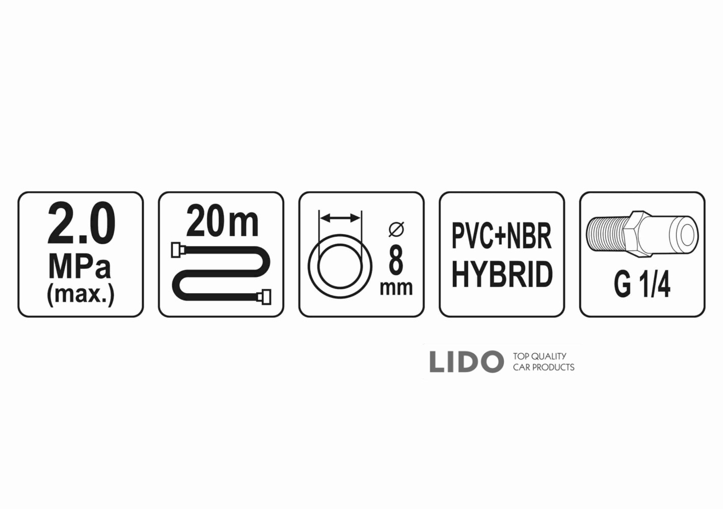 Шланг для пневмоінструменту YaTo гібридний 8мм 20м