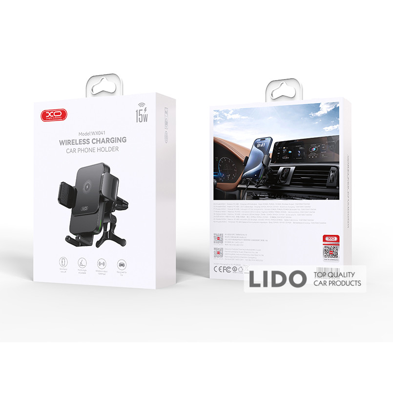 Тримач телефону автомобільний XO з бездротовою зарядкою WX041 Dual Arm Air Outlet 15W Wireless чорний