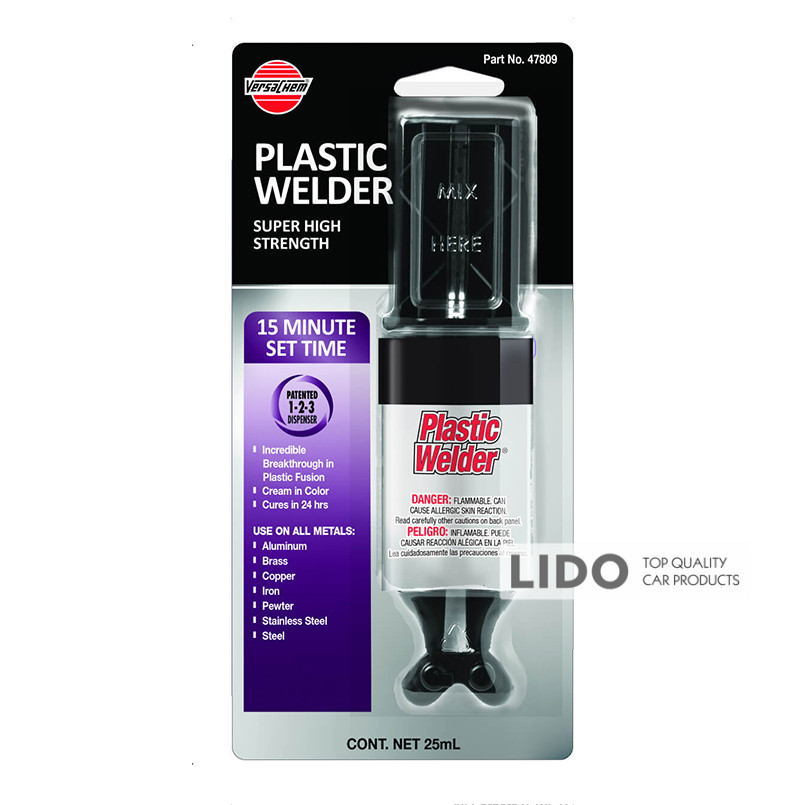 2-х компонентна «холодне зварювання» для пластику Plastic Welder 47809 (25мл) - призначена для склеювання акрилу, кераміки, фарфору, скловолокна, скла, більшості металів, більшості важких пластиків, ПВХ, стиролу, вінілу, дерева. Стійка до впливу більшості технічних рідин, витримує тиск до 240 кг/см2.