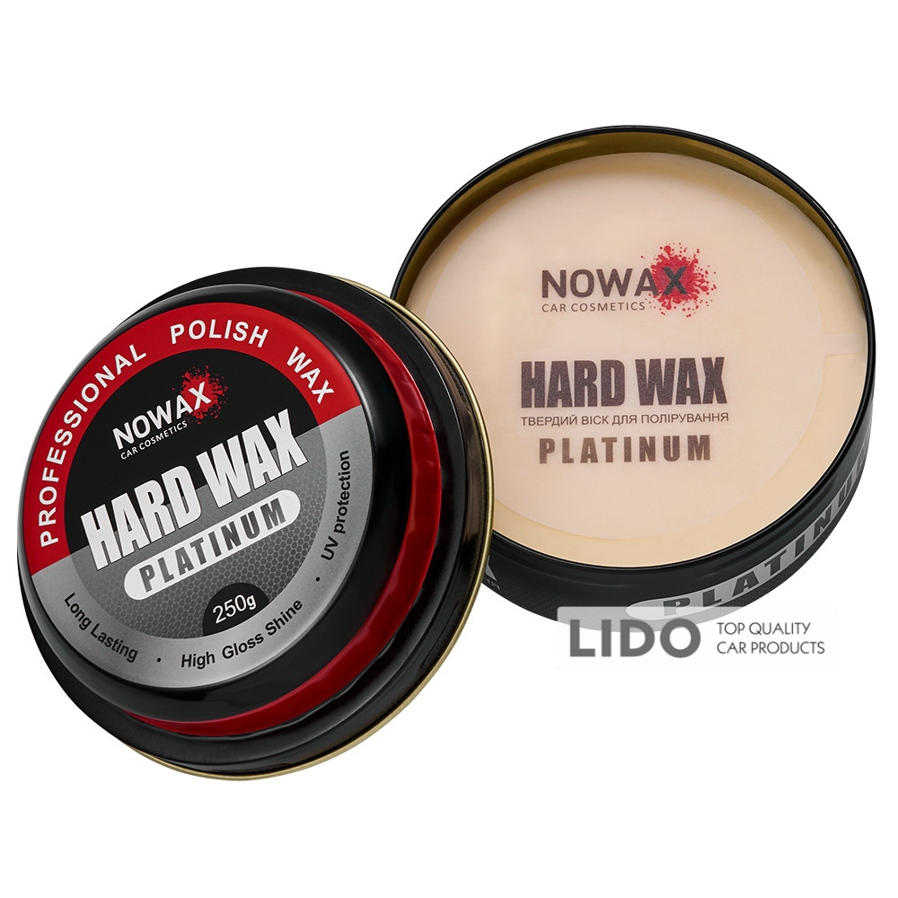 Nowax Carnauba Wax — твердий віск на основі натурального карнаубського воску для ефективного полірування та захисту лакофарбового покриття автомобіля. Надає поверхні глибокий блиск, створює водовідштовхувальний шар і захищає від впливу ультрафіолету та дорожніх забруднень.