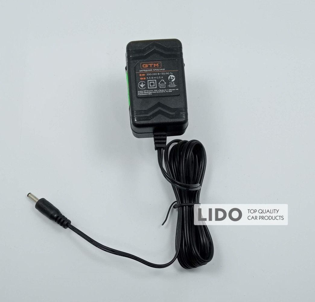 GTM Ch12V/1,5А — мережевий зарядний пристрій для акумуляторів GTM з напругою живлення 12 В. На корпусі передбачена світлодіодна індикація процесу заряджання.
