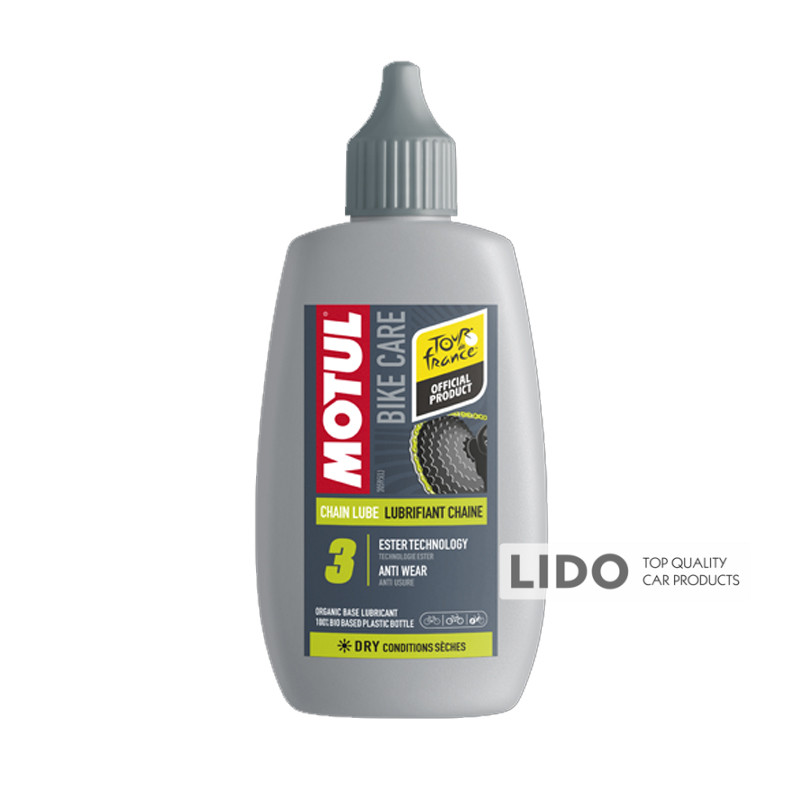 Відкрийте для себе MOTUL Chain Lube Dry — мастило, спеціально розроблене для всіх типів велосипедних ланцюгів, включаючи шосейні та електровелосипеди, які використовуються в сухих і сонячних умовах.