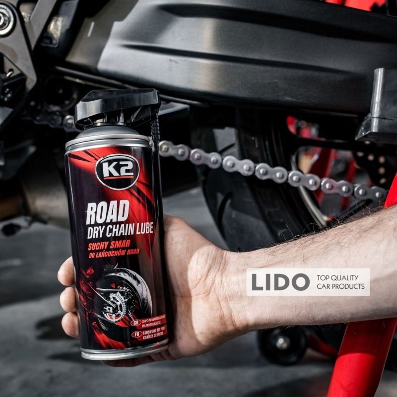 Регулярное использование K2 Dry Chain Grease ROAD обеспечивает надежную защиту цепи и стабильную работу мотоцикла в дорожных условиях.